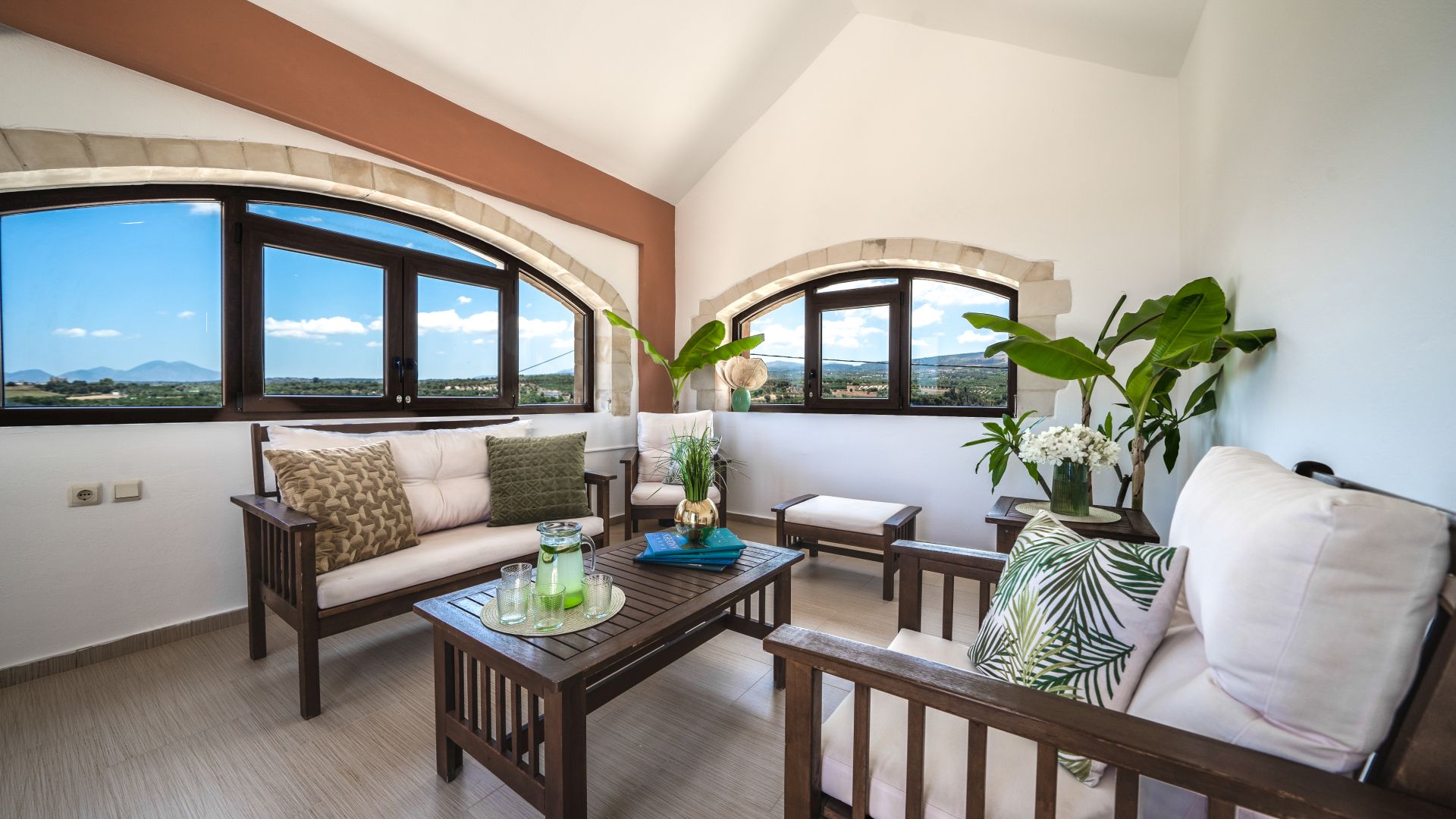 Villa 1 consists comfortable spaces inside, four double bedrooms, living room, dining room, traditional fireplace, two bathrooms, fully equipped kitchen, semi-outdoor area and very large terraces. All rooms have panoramic and unobstructed view of the unique Cretan landscape.