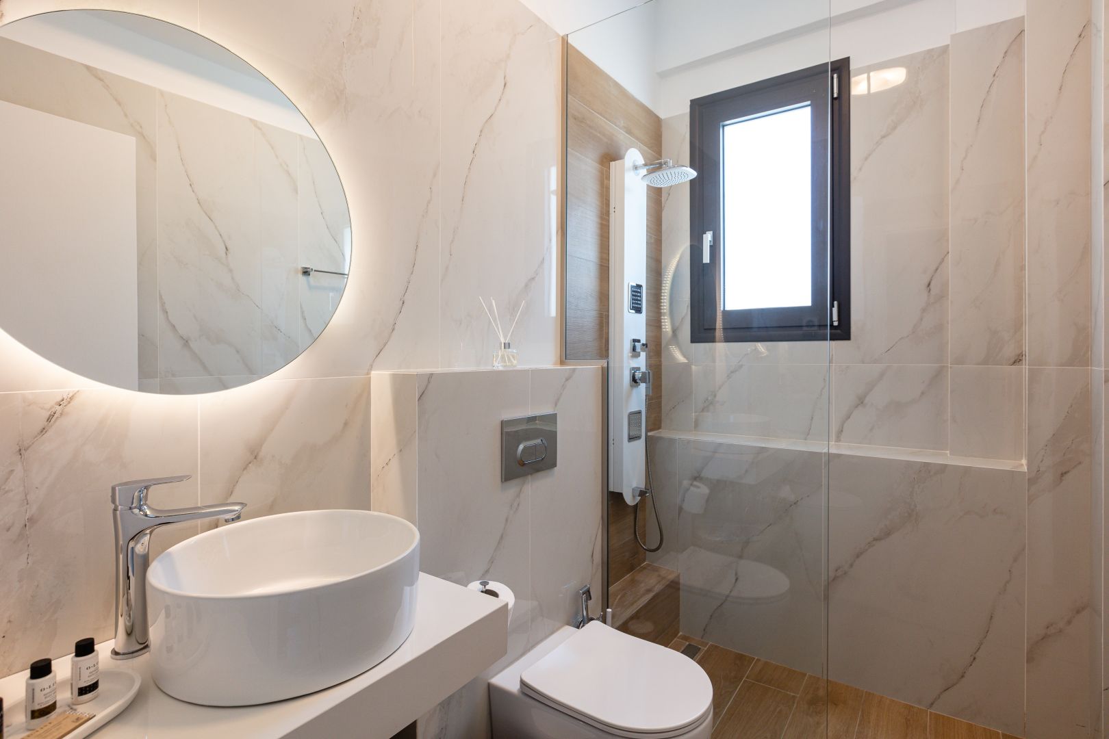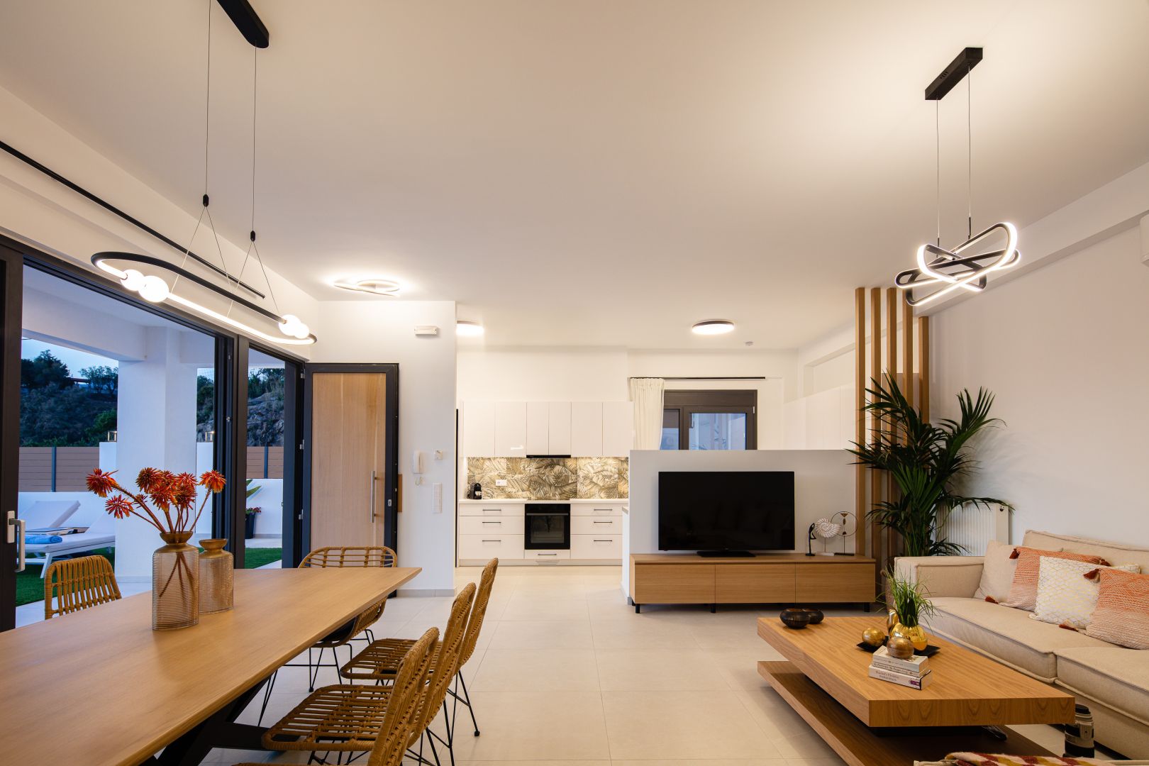 KAYO villa consists comfortable spaces inside, four double bedrooms with private bathrooms, living room, dining room, WC and a modern and fully equipped kitchen.